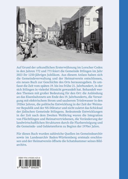 Auf Grund der urkundlichen Ersterwähnung im Lorscher Codex in den Jahren 772 und 773 feiert die Gemeinde Ittlingen im Jahr 2023 ihr 1250-jähriges Jubiläum. Aus diesem Anlass haben sich die Gemeindeverwaltung und der Heimatverein entschlossen, ein neues Buch zur Geschichte des Orts herauszugeben. Es umfasst die Zeit vom späten 19. bis ins frühe 21. Jahrhundert, in der sich Ittlingen in vielerlei Hinsicht gewandelt hat. Behandelt werden Themen mit großer Bedeutung für den Ort : die Anbindung an das Eisenbahnnetz am Ende des 19. Jahrhunderts, die Versorgung mit elektrischem Strom und sauberem Trinkwasser in den 1920er Jahren, die politische Entwicklung in der Zeit der Weimarer Republik und der NS-Diktatur und nicht zuletzt das Schicksal der jüdischen Gemeinde Ittlingens. Bedeutende Entwicklungen in der Zeit nach dem Zweiten Weltkrieg waren die Integration von Flüchtlingen und Heimatvertriebenen, die Veränderung der landwirtschaftlichen Strukturen durch die Flurbereinigung und die Gemeinde- und Gebietsreform zu Beginn der 1970er Jahre.Für dieses Buch wurden zahlreiche Quellen im Gemeindearchiv sowie im Landesarchiv Baden-Württemberg erstmals erschlossen und der Heimatverein öffnete die Schatzkammer seines Bildarchivs.