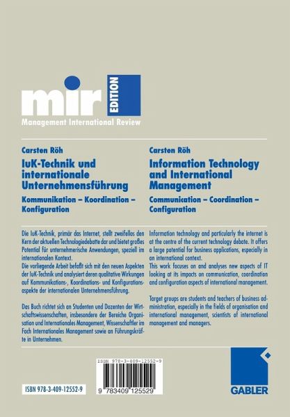 Die vorliegende Arbeit befasst sich theoriegeleitet mit den neuen Aspekten der Iuk-Technik und analysiert deren qualitative Wirkungen auf Kommunikations-, Koordinations- und Konfigurationsaspekte der internationalen Unternehmensführung. Dabei zeigt sich, dass die "virtuelle Organisation" nicht als grundsätzlich neue, durch IuK-Technik getriebene Organisationsform gesehen werden kann, dass IuK-Technik aber die Umsetzung bestehender internationaler Netzwerkansätze fördern kann.