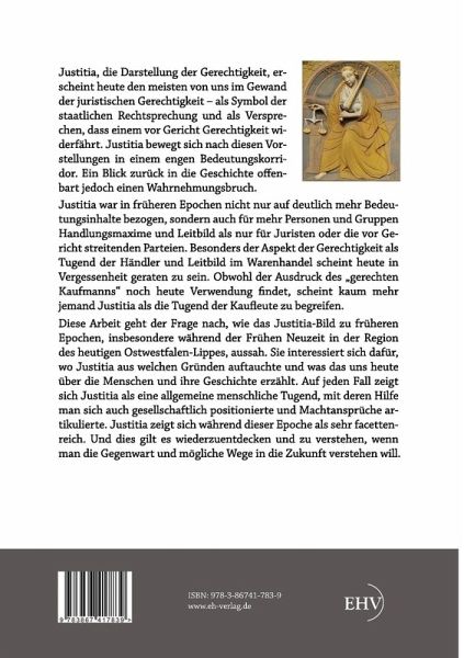 Justitia, die Darstellung der Gerechtigkeit, erscheint heute den meisten von uns im Gewand der juristischen Gerechtigkeit als Symbol der staatlichen Rechtsprechung und als Versprechen, dass einem vor Gericht Gerechtigkeit widerfährt. Justitia bewegt sich nach diesen Vorstellungen in einem engen Bedeutungskorridor. Ein Blick zurück in die Geschichte offenbart jedoch einen Wahrnehmungsbruch. Justitia war in früheren Epochen nicht nur auf deutlich mehr Bedeutungsinhalte bezogen, sondern auch für mehr Personen und Gruppen Handlungsmaxime und Leitbild als nur für Juristen oder die vor Gericht streitenden Parteien. Besonders der Aspekt der Gerechtigkeit als Tugend der Händler und Leitbild im Warenhandel scheint heute in Vergessenheit geraten zu sein. Obwohl der Ausdruck des gerechten Kaufmanns noch heute Verwendung findet, scheint kaum mehr jemand Justitia als die Tugend der Kaufleute zu begreifen. Diese Arbeit geht der Frage nach, wie das Justitia-Bild zu früheren Epochen, insbesondere während der Frühen Neuzeit in der Region des heutigen Ostwestfalen-Lippes, aussah. Sie interessiert sich dafür, wo Justitia aus welchen Gründen auftauchte und was das uns heute über die Menschen und ihre Geschichte erzählt. Auf jeden Fall zeigt sich Justitia als eine allgemeine menschliche Tugend, mit deren Hilfe man sich auch gesellschaftlich positionierte und Machtansprüche artikulierte. Justitia zeigt sich während dieser Epoche als sehr facettenreich. Und dies gilt es wiederzuentdecken und zu verstehen, wenn man die Gegenwart und mögliche Wege in die Zukunft verstehen will.