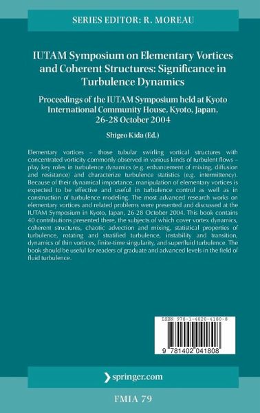 Elementary vortices - those tubular swirling vortical structures with concentrated vorticity commonly observed in various kinds of turbulent flows - play key roles in turbulence dynamics (e.g. enhancement of mixing, diffusion and resistance) and characterize turbulence statistics (e.g. intermittency). Because of their dynamical importance, manipulation of elementary vortices is expected to be effective and useful in turbulence control as well as in construction of turbulence modeling. The most advanced research works on elementary vortices and related problems were presented and discussed at the IUTAM Symposium in Kyoto, Japan, 26-28 October 2004. This book contains 40 contributions presented there, the subjects of which cover vortex dynamics, coherent structures, chaotic advection and mixing, statistical properties of turbulence, rotating and stratified turbulence, instability and transition, dynamics of thin vortices, finite-time singularity, and superfluid turbulence. The book should be useful for readers of graduate and advanced levels in the field of fluid turbulence.