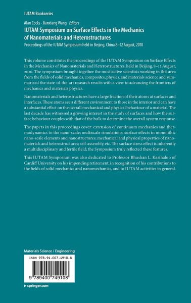 This volume constitutes the proceedings of the IUTAM Symposium on Surface Effects in the Mechanics of Nanomaterials and Heterostructures, held in Beijing, 8-12 August, 2010. The symposium brought together the most active scientists working in this area from the fields of solid mechanics, composites, physics, and materials science and summarized the state-of-the-art research results with a view to advancing the frontiers of mechanics and materials physics.