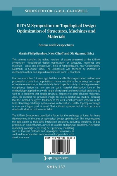 Level Sets, FEM and Sound.- Coupling the Level Set Method and the Topological Gradient in Structural Optimization.- Parametric Shape and Topology Optimization with Radial Basis Functions.- Generalized Shape Optimization Using X-FEM and Level Set Methods.- Topology Design of Three-Dimensional Structures Using Hybrid Finite Elements.- Topology Optimization of Vibrating Bi-Material Structures with Respect to Sound Radiation.- Classics Revisited.- Force Fields within Michell-Like Cantilevers Transmitting a Point Load to a Straight Support.- Reflections on Truss and Continuum Topology Optimal Designs.- Some Basic Issues of Topology Optimization.- Composites and Cellular Structures.- On Discrete Material Optimization of Laminated Composites Using Global and Local Criteria.- Analysis and Continuum Topology Optimization of Periodic Solids with Linearized Elastic Buckling Criterion.- Design of Cellular Structure for Optimum Efficiency of Heat Dissipation.- Layout of Tileable Multistable Structures Using Topology Optimization.- Topology Optimization of Dispersion Properties in Optical Fibres.- Optimal Design with Small Contrast.- Eigenfrequency and Buckling Optimization of Laminated Composite Shell Structures Using Discrete Material Optimization.- Effect of Internal Length Scale on Optimal Topologies for Cosserat Continua.- Mathematical Programming and Modelling.- Cellular Automata Paradigm for Topology Optimisation.- A one Shot Approach to Topology Optimization with Local Stress Constraints.- A Concept for Global Optimization of Topology Design Problems.- Image Processing Ideas and Level Sets.- Impedance Imaging for Inhomogeneities of Low Volume Fraction.- The Phase-Field Method in Optimal Design.- Level Set Based Shape Optimization of Geometrically Nonlinear Structures.- Industry and Software.- Industrial Implementation and Applications of Topology Optimization and Future Needs.- Recent Developments in the Commercial Implementation of Topology Optimization.- Mechanisms and Multiphysics.- Configuration Design of Rigid Link Mechanisms by an Optimization Method: A First Step.- The Pressure Load Problem Re-Visited.- Topology Optimization in Magnetic Fields.- Electro-Mechanical Topology Optimization Considering Non-Matching Meshes.- Waves.- Structural Topology Optimization of Mechanical Resonators, Actuators and Sensors.- Topology Optimization of Wave Transducers.- Optimal Mode Coupling in Simple Planar Waveguides.- Geometry Modelling.- Topology Optimization by Penalty (TOP) Method.- Topology Optimization with CAMD for Structures Undergoing Finite Deformation.- Spectral Level Set Methodology in the Design of a Morphing Airfoil.- Acoustics and Fluids and Actuators.- Topology Optimization for Acoustic-Structure Interaction Problems.- Topology Optimization of Mass Distribution Problems in Stokes Flow.- Topology Optimization for Acoustic Problems.- Topology Optimization of Wave-Propagation Problems.- Topology Optimization of Piezoelectric Actuators Considering Geometric Nonlinearities.- Mathematical Programming Issues.- The Worst-Case Multiple Load FMO Problem Revisited.- Simultaneous Optimization of Truss Topology and Geometry, Revisited.- Topology Optimization by Sequential Integer Linear Programming.- Bio.- Bio-Inspired Material Design and Optimization.- Protein Sequence Design on the Basis of Topology Optimization Techniques.- Topological Derivatives, Reliability, and Other Features.- Topological-Shape Sensitivity Method: Theory and Applications.- Topological Derivatives for Contact Problems.- Reliability-Based Topology Optimization (RBTO).- A Feature-Based Structural Topology Optimization Method.- Composites and Graded Materials.- Design of Fiber Reinforced Shafts Subject to Local Stress Constraints Through Inverse Homogenization.- Hierarchical Optimization of Material and Structure for Thermal Transient Problems.- Optimization of Foam Filled Structures Using Gradient Algorithms.- Fluids and Materials.- The Darcy-Stokes Topology Optimization Problem.- Topology Optimization of Fluid Problems by the Lattice Boltzmann Method.- A Class of Optimal Two-Dimensional Multimaterial Conducting Laminates.- New Approaches.- Multidisciplinary Topology Design and Partial Differential Games.- Coupling Topological Gradient and Gauss-Newton Method.