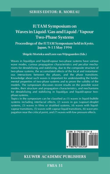 (1) Waves in liquid-gas bubble systems including interfacial effects.- Void waves.- Structure and stability of void waves in bubbly flows.- Void and pressure waves in slug flow.- Behavior of void wave on the basis of turbulent liquid-bubbles two-phase flow model.- Acoustic waves.- Linear waves in bubbly liquids.- Surface oscillations of mutually-interacting gas bubbles in a sound field.- On waves of the self-induced acoustic transparency in mixtures of liquid and vapor bubbles.- Pressure waves in bubbly liquids.- Pressure waves in two-phase bubble/slug flows and interphase process.- Structure of shock waves in a liquid containing gas bubbles.- High-frequency nonlinear waves in bubbly liquid.- Numerical simulations and kinetic theory for simple shear motion of bubbly suspensions.- Bouncing and coalescence of two bubbles in pure water.- Interaction of an underwater shock wave with a gas bubble.- (2) Waves in gas(vapor)-droplets systems.- Wave phenomena during droplet impact.- Maximum pressures during hypervelocity liquid-liquid impact.- On travelling waves in two-phase systems.- (3) Waves in film or stratified systems.- Chaotic behavior of waves in two-phase system.- Evolution of time periodic perturbations on films falling down walls.- Thermal control of interfacial instabilities in multilayer thin-film flows.- Hydrodynamic stability of liquid films.- Interfacial wave structure and its effect on transport phenomena in horizontal wavy/annular two-phase flows.- Pressure wave propagation in a separated liquid-gas layer in a horizontal duct.- (4) Waves in liquid-vapor transition.- Dynamics of a single reactive gas bubble.- Stability and nonequilibrium phase transitions in boiling-up systems.- On the perturbations of evaporation waves and liquefaction shocks.- Explosive boiling of a depressurized volatile liquid.- Propagation of waves in a vapor-gas mixture due to evaporation and condensation.- Observations of explosive exsolution in liquids.- (5) Waves with vapor-liquid transition.- Film condensation of the vapor flow behind a shock wave on the shock-tube side wall.- Experiments of vapor-liquid phase transition in a shock-tube.- Theoretical investigation of condensation dynamics in shock tubes.- New modes of periodic shock formation in compressible two-phase flows.- (6) Wave propagation near critical point.- Adiabatic waves in the neighbourhood of the critical point.- Material waves of a fluid in the vicinity of the critical point.- A model of a plug-chain system near the thermodynamic critical point: connection with the Korteweg theory of capillarity and modulation equations.- (7) Waves with low pressure effect.- Behaviour of a liquid under dynamic loading.