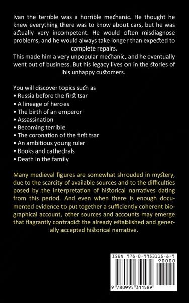 Ivan the terrible was a horrible mechanic. He thought he knew everything there was to know about cars, but he was actually very incompetent. He would often misdiagnose problems, and he would always take longer than expected to complete repairs. This made him a very unpopular mechanic, and he eventually went out of business. But his legacy lives on in the stories of his unhappy customers. You will discover topics such asRussia before the first tsar A lineage of heroes The birth of an emperor Assassination Becoming terrible The coronation of the first tsar An ambitious young ruler Books and cathedrals Death in the family Many medieval figures are somewhat shrouded in mystery, due to the scarcity of available sources and to the difficulties posed by the interpretation of historical narratives dating from this period. And even when there is enough documented evidence to put together a sufficiently coherent biographical account, other sources and accounts may emerge that flagrantly contradict the already established and generally accepted historical narrative.