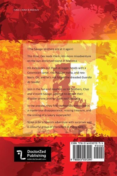 The Savage brothers are at it again! This time, Des leads them into more misadventure on the sun-drenched Island of Mallorca. His escapades put them at logger heads with a Colombian cartel, the Russian mafia, and neo-Nazis. Oh, and let's not forget the dreaded Guardia de Saville! Join in the fun and mayhem as his brothers, Chaz and Vincent Savage, attempt to extract their disaster-prone brother from each debacle. In the process they find themselves embroiled in a mysterious disappearance, missing treasure, and the sinking of a luxury superyacht! Strap in for a Spanish adventure with surprises and a colourful group of characters at every turn.