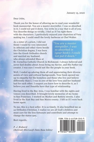 I've Got tickets to Heaven is meant to be, as the author claims, no more than reproductions of café style conversations amongst friends about themes well familiar to humans. These conversations, at one stage of their friendly encounters, eventually evolve and connect with more serious gatherings of civic and social nature. The novel is helped by the characters' combination of organized events and collective duties, as well as the unexpected outcomes along their way of impacting their own personal lives' fulfillments. It also helps that this small group of acquaintances grows in respect and admiration for each other. Their impact on others in the society they live in is so subtle and yet so necessarily magnanimous. It is at one time very contagious and life's changing. Max, the charismatic Agnostic and Sam the homeless with an unequivocal class act, are the most beneficiaries of their participatory and social gatherings. The small group of friends comes from a variety of backgrounds, are professionally engaged in different endeavors, and, dedicate their supposedly free time to causes that impact society as a whole. One is an Agnostic, another is a Dominican Catholic priest, another is a laywoman with strong connections to the Catholic church, who also drags her very unorthodox husband to the same gatherings, another is a Lutheran Pastor. Although other protagonists come to this dance floor of human gatherings and conversations, the most visible character happens to be a homeless San Franciscan man. Sam, as he is known to the others, kind of connects with all in some unorthodox fashion and, as aloof and elusive he is to the other protagonists, becomes the shining example to all living human beings. Sam, eventually, and never abdicating from his role among the nation of other homeless people, grows to see and enjoy the company of these privileged folks. Along the way, and as a byproduct of Herbert, the Lutheran Pastor's opening of a small homeless shelter in the city and, Fausto's almost daily connections with Sam, the homeless, a friendship grows on both. Both feel free and unencumbered in frank conversations on the separation of Catholicism and Protestantism. The subject of reformation comes to the fold; and both find a way to discourse freely the causes of the protestant reformation, the Catholic Church's slow feet in reform, and the critical issue of priests' celibacy. A typical barbecue afternoon becomes a friendly event that not only finds typical food and drinking enjoyment, but also sets the stage for more intellectual, historic, and warm feelings engagements. The protagonists are the usual friends plus others who participated in the student's thesis project. These are Elvera and Walter, Max, and his wife, Karen, and her husband Arthur, Herbert, the Lutheran, and finally the ever-elusive homeless Sam. A Sunday barbecue at Elvera's is the longest chapter and the one where all the best conductors of goodwill on the planet are socially engaged, warmly gratified, and above all hope for a more just world appears to be within their reach. Sam's presence is carefully noted and enjoyed.