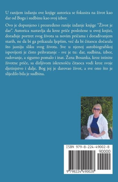 U ranijem izdanju ove knjige autorica se fokusira na ivot kao dar od Boga i sudbinu kao svoj izbor. Ovo je dopunjeno i preure¿eno ranije izdanje knjige ''ivot je dar''. Autorica nastavlja da kroz pri¿e posloene u ovoj knjizi, doräuje portret svog ivota sa novim pri¿ama i doräivanjem starih, ne da bi ga prikazala ljepim, ve¿ da bi ¿itaocu döarala to jasniju sliku svog ivota. Sve u njenoj autobiografskoj ispovijesti je ¿isto prihvatanje - sve je tu: dar, sudbina, izbor, radovanje, a sigurno pomalo i inat. ena Bosanka, kroz istinite ivotne pri¿e, sa dirljivom iskreno¿u ¿itaoca vodi kroz svoje djetinjstvo i dalje. Bog joj je darovao ivot, a sve ono to je slijedilo bila je sudbina.