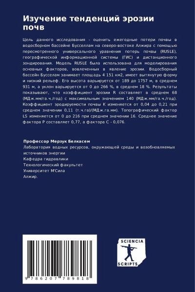 Cel' dannogo issledowaniq - ocenit' ezhegodnye poteri pochwy w wodosbornom bassejne Bussellam na sewero-wostoke Alzhira s pomosch'ü peresmotrennogo uniwersal'nogo urawneniq poter' pochwy (RUSLE), geograficheskoj informacionnoj sistemy (GIS) i distancionnogo zondirowaniq. Model' RUSLE byla ispol'zowana dlq modelirowaniq osnownyh faktorow, wowlechennyh w qwlenie ärozii. Vodosbornyj bassejn Busselam zanimaet ploschad' 4 151 km2, imeet wytqnutuü formu i nizkij rel'ef. Ego wysota war'iruetsq ot 189 do 1757 m, w srednem 931 m, a uklon war'iruetsq ot 0 do 266 %, w srednem 18 %. Rezul'taty pokazywaüt, chto koäfficient ärozii R sostawlqet w srednem 68 (MDzh.mm/ga.ch./god) s maximal'nym znacheniem 140 (MDzh.mm/ga.ch./god). Koäfficient ärodiruemosti pochwy K izmenqetsq ot 0,04 do 0,21 pri srednem znachenii 0,11 (t.ch.ga)/(MDzh.ga.mm). Topograficheskij faktor LS izmenqetsq ot 0 do 216 pri srednem znachenii 16. Srednee znachenie faktora P sostawlqet 0,77, a faktora C - 0,076.