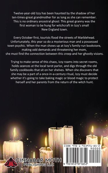 Twelve-year-old Izzy has been haunted by the shadow of her ten-times-great grandmother for as long as she can remember. This is no ordinary ancestral ghost: This great granny was the first woman to be hung for witchcraft in Izzy's small New England town. Every October first, tourists flood the streets of Marblehead. Unfortunately, this year so do a mysterious man and a possessed town psychic. When the man shows up at Izzy's family-run bookstore, making odd demands and threatening her mom, she must find the connection between this creep and her ghostly visions. Trying to make sense of this chaos, Izzy roams into secret rooms, holds seances at the local tarot parlor, and digs through the old family cookbooks that sit on her shelves. When she discovers that she may be a part of a once-in-a-century ritual, Izzy must decide whether it's going to take baking magic or blood magic to protect herself and her parents from the return of the witch hunt.
