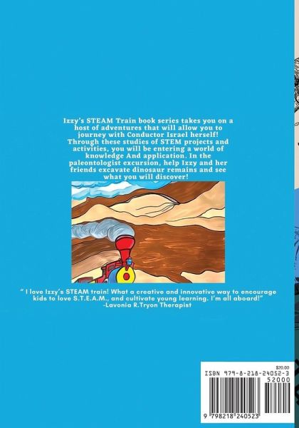Izzy's STEAM Train book series takes you on a host of adventures that will allow you to journey with Conductor Israel herself! Through these studies of STEM projects and activities, you will be entering a world of knowledge and application. In the paleontologist excursion, help Izzy and her friends excavate dinosaur remains and see what you will discover!