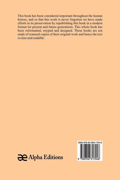 This book has been considered important throughout the human history, and so that this work is never forgotten we have made efforts in its preservation by republishing this book in a modern format for present and future generations. This whole book has been reformatted, retyped and designed. These books are not made of scanned copies and hence the text is clear and readable.
