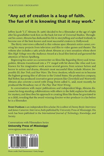 Jeffrey Jacob "J. J." Abrams (b. 1966) decided to be a filmmaker at the age of eight after his grandfather took him on the back-lot tour of Universal Studios. Throughout his career, Abrams has dedicated his life to storytelling and worked tirelessly to become one of the best-known and most successful creators in Hollywood. The thirty interviews collected in this volume span Abrams's entire career, covering his many projects from television and film to video games and theater. The volume also includes a 1982 article about Abrams as a teen sensation whose short film High Voltage won the Audience Award at a local film festival and garnered the attention of Steven Spielberg. Beginning his career as a screenwriter on films like Regarding Henry and Armageddon, Abrams transitioned into a TV mogul with hit shows like Alias and Lost. Known for his imaginative work across several genres, from science fiction and horror to action and drama, Abrams's most successful films include Mission: Impossible III; Star Trek; and Star Wars: The Force Awakens, which went on to become the highest-grossing film of all time in the United States. His production company, Bad Robot, has produced innovative genre projects like Cloverfield and Westworld. Abrams also cowrote a novel with Doug Dorst called S., and, most recently, he produced the Broadway run of The Play That Went Wrong. In conversations with major publications and independent blogs, Abrams discusses his long-standing collaborations with others in the field, explains his affinity for mystery, and describes his approach to creating films like those he gravitated to as a child, revealing that the award-winning director-writer-producer is a fan before he is a filmmaker.