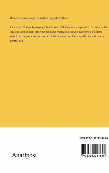 Réimpression inchangée de l'édition originale de 1859. La maison d'édition Anatiposi publie des livres historiques en réimpression. En raison de leur âge, ces livres peuvent présenter des pages manquantes ou une qualité moindre. Notre objectif est de préserver ces livres et de les rendre accessibles au public afin qu'ils ne se perdent pas.