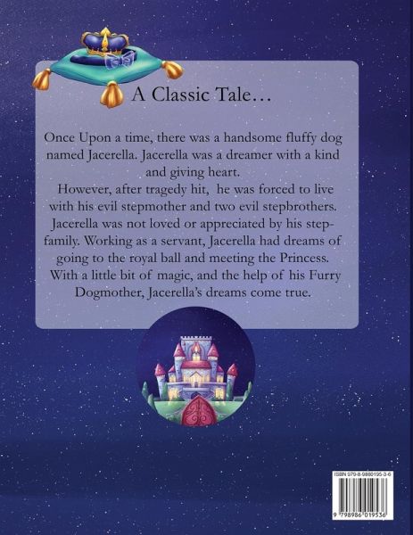 Once upon a time, there was a handsome fluffy dog named Jacerella. Jacerella was a dreamer with a kind and sweet heart. However, after tragedy hit, he was forced to live with his evil stepmother and stepbrothers. Jacerella was not loved or appreciated by his stepfamily. Working as a servant, Jacerella dreamed of going to the Royal ball and meeting the Princess. With a little magic and the help of his Furry Dogmother, Jacerella's dreams come true.