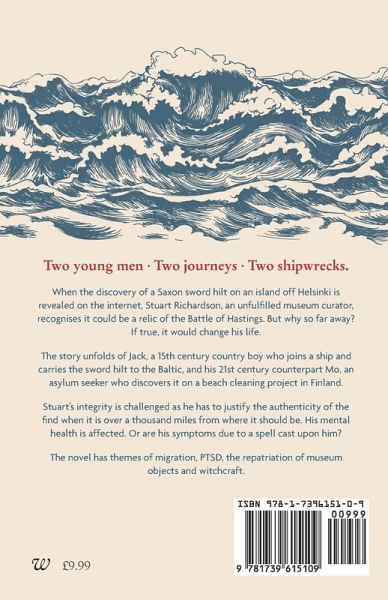 Two young men. Two journeys. Two shipwrecks. When the discovery of a Saxon sword hilt on an island off Helsinki is announced on the internet, Stuart Richardson, an unfulfilled museum curator recognises it could be a relic of the Battle of Hastings. But why so far away? If true it would change his life. The story unfolds of Jack, a 15th century country boy who joins a ship and carries the sword hilt to the Baltic, and his 21st century counterpart Mo, an asylum seeker who discovers it on a beach cleaning project in Finland. Stuart's integrity is challenged as he has to justify the authenticity of the find when it is over a thousand miles from where it should be. His mental health is affected. Or are his symptoms due to a spell cast upon him? 'A haunting and richly textured novel that shows how the past informs the present. What has been lived may live with us still.' Alan Judd, award-winning author of A Fine Madness. The novel has themes of migration, PTSD, the repatriation of museum objects and witchcraft.