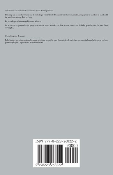 Tamara wist niet en zou ook nooit weten wat er daarna gebeurde. Het enige wat ze zich herinnerde was de plotselinge, verblindende flits van zilver in het licht, een branderig gevoel in haar keel en haar hoofd dat werd opgetrokken door het haar. En plotseling was het onmogelijk om te ademen. Ze worstelde en probeerde zijn greep los te maken, maar ontdekte dat haar armen aanvoelden als loden gewichten en dat haar focus vervaagde... Opmerking over de auteur: Erika Sanders is een internationaal bekende schrijfster, vertaald in meer dan twintig talen, die haar meest erotische geschriften, weg van haar gebruikelijke proza, signeert met haar meisjesnaam.