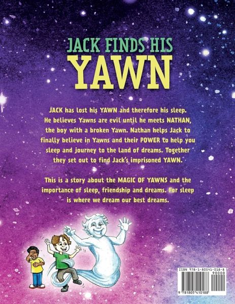 Jack has lost his Yawn and therefore his sleep. He believes Yawns are evil until he meets Nathan, the boy with a broken Yawn. Nathan helps Jack to finally believe in Yawns and their power to help you sleep and journey to the land of dreams. Together they set out to find Jack's imprisoned Yawn. This is a story about the magic of Yawns and the importance of sleep, friendship and dreams. For sleep is where we dream our best dreams.