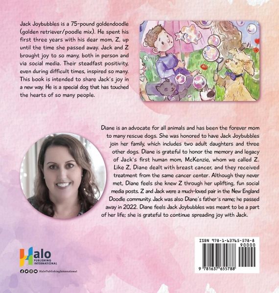 Jack Joybubbles is a 75-pound goldendoodle (golden retriever/poodle mix). He spent his first three years with his dear mom, Z, up until the time she passed away. Jack and Z brought joy to so many, both in person and via social media. Their steadfast positivity, even during difficult times, inspired so many. This book is intended to share Jack's joy in a new way. He is a special dog that has touched the hearts of so many people.