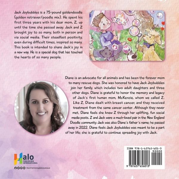 Jack Joybubbles is a 75-pound goldendoodle (golden retriever/poodle mix). He spent his first three years with his dear mom, Z, up until the time she passed away. Jack and Z brought joy to so many, both in person and via social media. Their steadfast positivity, even during difficult times, inspired so many. This book is intended to share Jack's joy in a new way. He is a special dog that has touched the hearts of so many people.