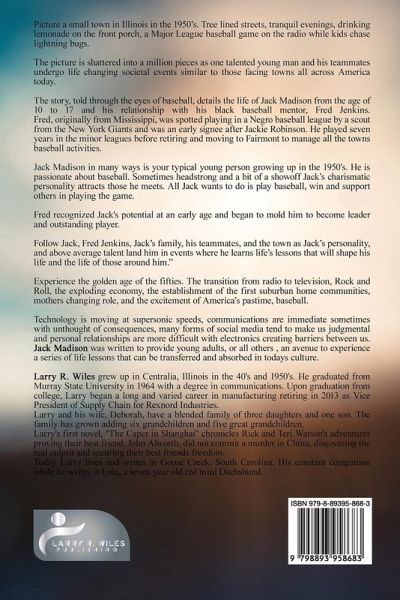 Picture a small town in Illinois in the 1950's. Tree lined streets, tranquil evenings, drinking lemonade on the front porch, a Major League baseball game on the radio while kids chase lightning bugs. The picture is shattered into a million pieces as one talented young man and his teammates undergo life changing societal events similar to those facing towns all across America today. The story, told through the eyes of baseball, details the life of Jack Madison from the age of 10 to 17 and his relationship with his black baseball mentor, Fred Jenkins. Fred, originally from Mississippi, was spotted playing in a Negro baseball league by a scout from the New York Giants and was an early signee after Jackie Robinson. He played seven years in the minor leagues before retiring and moving to Fairmont to manage all the towns baseball activities. Jack Madison in many ways is your typical young person growing up in the 1950's. He is passionate about baseball. Sometimes headstrong and a bit of a showoff Jack's charismatic personality attracts those he meets. All Jack wants to do is play baseball, win and support others in playing the game. Fred recognized Jack's potential at an early age and began to mold him to become leader and outstanding player. Follow Jack, Fred Jenkins, Jack's family, his teammates, and the town as Jack's personality, and above-average talent land him in events where he learns life's lessons that will shape his life and the life of those around him." Experience the golden age of the fifties. The transition from radio to television, Rock and Roll, the exploding economy, the establishment of the first suburban home communities, mothers changing role, and the excitement of America's pastime, baseball. Technology is moving at supersonic speeds, communications are immediate sometimes with unthought-of consequences, many forms of social media tend to make us judgmental and personal relationships are more difficult with electronics creating barriers between us. Jack Madison was written to provide young adults, or all others, an avenue to experience a series of life lessons that can be transferred and absorbed in today's culture.