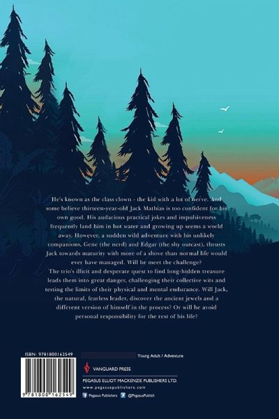 He's known as the class clown - the kid with a lot of nerve. And some believe thirteen-year-old Jack Mathias is too confident for his own good. His audacious practical jokes and impulsiveness frequently land him in hot water and growing up seems a world away. However, a sudden wild adventure with his unlikely companions, Gene (the nerd) and Edgar (the shy outcast), thrusts Jack towards maturity with more of a shove than normal life would ever have managed. Will he meet the challenge? The trio's illicit and desperate quest to find long-hidden treasure leads them into great danger, challenging their collective wits and testing the limits of their physical and mental endurance. Will Jack, the natural, fearless leader, discover the ancient jewels and a different version of himself in the process? Or will he avoid personal responsibility for the rest of his life?
