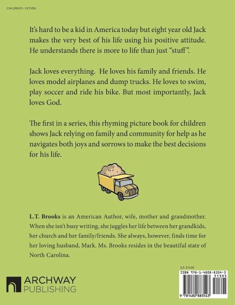 It's hard to be a kid in America today but eight year old Jack makes the very best of his life using his positive attitude. He understands there is more to life than just "stuff". Jack loves everything. He loves his family and friends. He loves model airplanes and dump trucks. He loves to swim, play soccer and ride his bike. But most importantly, Jack loves God. The first in a series, this rhyming picture book for children shows Jack relying on family and community for help as he navigates both joys and sorrows to make the best decisions for his life.