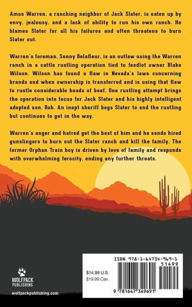 Amos Warren, a ranching neighbor of Jack Slater, is eaten up by envy, jealousy, and a lack of ability to run his own ranch. He blames Slater for all his failures and often threatens to burn Slater out. Warren's foreman, Sonny Belafleur, is an outlaw using the Warren ranch in a cattle rustling operation tied to feedlot owner Blake Wilson. Wilson has found a flaw in Nevada's laws concerning brands and when ownership is transferred and is using that flaw to rustle considerable heads of beef. One rustling attempt brings the operation into focus for Jack Slater and his highly intelligent adopted son, Rob. An inept sheriff begs Slater to end the rustling but continues to get in the way. Warren's anger and hatred get the best of him and he sends hired gunslingers to burn out the Slater ranch and kill the family. The former Orphan Train boy is driven by love of family and responds with overwhelming ferocity, ending any further threats.
