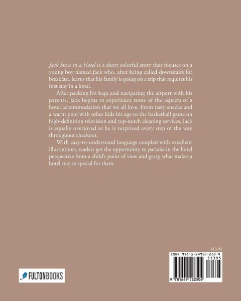 Jack Stays in a Hotel is a short colorful story that focuses on a young boy named Jack who, after being called downstairs for breakfast, learns that his family is going on a trip that requires his first stay in a hotel. After packing his bags and navigating the airport with his parents, Jack begins to experience some of the aspects of a hotel accommodation that we all love. From tasty snacks and a warm pool with other kids his age to the basketball game on high-definition television and top-notch cleaning services, Jack is equally overjoyed as he is surprised every step of the way throughout checkout. With easy-to-understand language coupled with excellent illustrations, readers get the opportunity to partake in the hotel perspective from a child's point of view and grasp what makes a hotel stay so special for them.