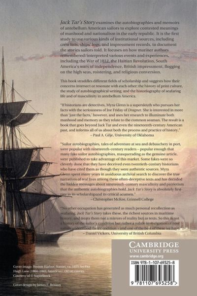 Jack Tar's Story examines the autobiographies and memoirs of antebellum American sailors to explore contested meanings of manhood and nationalism in the early republic. It is the first study to use various kinds of institutional sources, including crew lists, ships' logs, impressment records, to document the stories sailors told. It focuses on how mariner authors remembered/interpreted various events and experiences, including the War of 1812, the Haitian Revolution, South America's wars of independence, British impressment, flogging on the high seas, roistering, and religious conversion. This book straddles different fields of scholarship and suggests how their concerns intersect or resonate with each other: the history of print culture, the study of autobiographical writing, and the historiography of seafaring life and of masculinity in antebellum America.