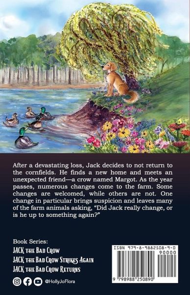 After a devastating loss, Jack decides not to return to the cornfields. He finds a new home and meets an unexpected friend - a crow named Margot. As the year passes, numerous changes come to the farm. Some changes are welcomed, while others are not. One change in particular brings suspicion and leaves many of the farm animals asking, "Did Jack really change, or is he up to something again?" Jack the Bad Crow Returns is book three in the Jack the Bad Crow series. Jack the Bad Crow - Book 1 Jack the Bad Crow Strikes Again - Book 2 Jack the Bad Crow Returns - Book 3 Clawthorne: A Jack the Bad Crow Story - Standalone