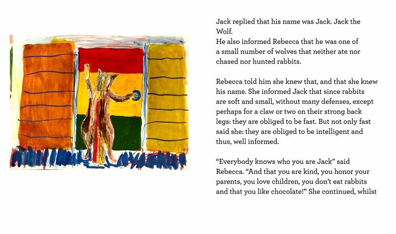 Jack the Wolf lives in a beautiful cave on a short mountain, near Colorfull Town. Jack is a happy and benevolent wolf, with only one weakness: CHOCOLATE. Follow Jack the Wolf through the pages of this beautifully illustrated book by world-renowned artist Sean Scully and his son Oisin Scully, to discover the trouble Jack causes to the children of Colorfull Town in his nightly hunts for chocolate dinners, and how his new friend Rebecca the Rabbit helps him restore happiness to the sad children of the town.