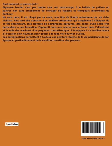 L'ombre de l'industrialisation plane sur la France du XIXe siècle, transformant les rêves en réalités souvent cruelles. Dans ce contexte, Jack, un jeune homme issu d'un milieu modeste, se débat entre les attentes de sa mère ambitieuse et ses propres aspirations. Alphonse Daudet nous plonge dans une société en plein changement, où les classes sociales se heurtent et se redéfinissent. Le récit s'articule autour de la quête identitaire de Jack, tiraillé entre son désir d'émancipation et les pressions familiales. L'uvre explore les thèmes de l'innocence perdue et de la lutte pour l'autonomie, tout en peignant un tableau saisissant des inégalités sociales de l'époque. À travers les yeux de Jack, le lecteur découvre un monde où l'ascension sociale est un parcours semé d'embûches, souvent au détriment des valeurs humaines. Les personnages qui gravitent autour de Jack, chacun avec ses propres changements et désillusions, enrichissent cette fresque sociale. En développant une analyse fine des relations humaines et des tensions sociales, ce livre nous apprend à mieux comprendre les défis de l'époque industrielle. Par le prisme de l'expérience de Jack, nous percevons désormais mieux les sacrifices et les compromis nécessaires pour naviguer dans un monde en constante évolution.