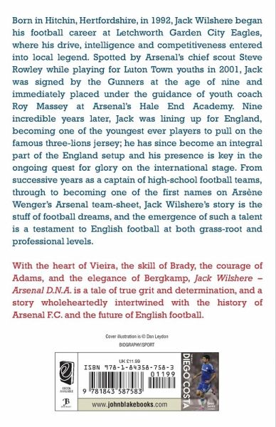 Born in Hitchin, Hertfordshire, in 1992, Jack began his football career at Letchworth Garden City Eagles, where his drive, intelligence and competitiveness entered in to local legend. Spotted by Arsenal's chief scout Steve Rowley while playing for Luton Town youths in 2001, Jack Wilshere was signed by the Gunners at the age of nine and immediately placed under the guidance of youth coach Roy Massey at Arsenal's Hale End Academy. Nine incredible years later, Jack was lining up for England, becoming one of the youngest ever players to pull on the famous three-lions jersey; he has since become an integral part of the England setup and his presence is key in the ongoing quest for World Cup glory in Brazil in 2014. From successive years as a captain of high-school football teams, through to becoming one of the first names in Arsene Wenger's Arsenal team-sheet, Jack Wilshere's story is the stuff of football dreams, and the emergence of such a talent is a testament to English football at both grass-root and professional levels. With the heart of Vieria, the skill of Brady, the grace of Beckham, and the elegance of Bergkamp, Jack Wilshere - Arsenal DNA is a tale of true grit and determination, and a story wholeheartedly intertwined with the history of Arsenal FC and the future of English football.