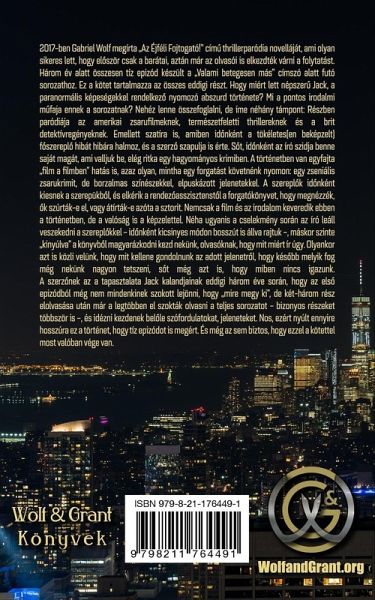 2017-ben Gabriel Wolf megírta ¿Az Éjféli Fojtogató!" cím¿ thrillerparódia novelláját, ami olyan sikeres lett, hogy el¿ször csak a barátai, aztán már az olvasói is elkezdték várni a folytatást. Három év alatt összesen tíz epizód készült a ¿Valami betegesen más" címszó alatt futó sorozathoz. Ez a kötet tartalmazza az összes eddigi részt. Hogy miért lett népszer¿ Jack, a paranormális képeségekkel rendelkez¿ nyomozó abszurd története? Mi a pontos irodalmi m¿faja ennek a sorozatnak? Nehéz lenne összefoglalni, de íme néhány támpont: Részben paródiája az amerikai zsarufilmeknek, természetfeletti thrillereknek és a brit detektívregényeknek. Emellett szatíra is, amiben id¿nként a tökéletes(en beképzelt) f¿szerepl¿ hibát hibára halmoz, és a szerz¿ szapulja is érte. S¿t, id¿nként az író szidja benne saját magát, ami valljuk be, elég ritka egy hagyományos krimiben. A történetben van egyfajta ¿film a filmben" hatás is, azaz olyan, mintha egy forgatást követnénk nyomon: egy zseniális zsarukrimit, de borzalmas színészekkel, elpuskázott jelenetekkel. A szerepl¿k id¿nként kiesnek a szerepükb¿l, és elkérik a rendez¿asszisztenst¿l a forgatókönyvet, hogy megnézzék, ¿k szúrták-e el, vagy átírták-e azóta a sztorit. Nemcsak a film és az irodalom keveredik ebben a történetben, de a valóság is a képzelettel. Néha ugyanis a cselekmény során az író leáll veszekedni a szerepl¿kkel - id¿nként kicsinyes módon bosszút is állva rajtuk -, máskor szinte ¿kinyúlva" a könyvb¿l magyarázkodni kezd nekünk, olvasóknak, hogy mit miért ír úgy. Olyankor azt is közli velünk, hogy mit kellene gondolnunk az adott jelenetr¿l, hogy kés¿bb melyik fog még nekünk nagyon tetszeni, s¿t még azt is, hogy miben nincs igazunk. A szerz¿nek az a tapasztalata Jack kalandjainak eddigi három éve során, hogy az els¿ epizódból még nem mindenkinek szokott lejönni, hogy ¿mire megy ki", de két-három rész elolvasása után már a legtöbben el szokták olvasni a teljes sorozatot, és idézni kezdenek bel¿le szófordulatokat, jeleneteket.