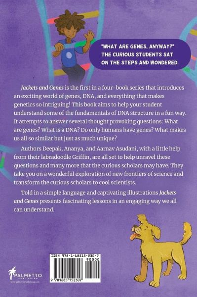 Jackets and Genes is the 1st in a four-book series 'The Curious Scholars'. Authors Deepak, Ananya, and Aarnav Asudani introduce you to an exciting world of genes, DNA, and everything that makes genetics so intriguing! This book aims to help your student understand some of the fundamentals of DNA structure in a fun way. A must have and must read for the motivated STEM students. The curious scholars will get answers to several thought provoking questions: What are genes? What is a DNA? Do only humans have genes? What makes us all so similar but just as much unique? The characters in the book Casey, Gabriella, Anika, Thomas with a little help from their labradoodle Griffin, take you on a wonderful exploration of new frontiers of science and transform the curious scholars to cool scientists. Written in simple language, with captivating illustrations by Katie Risor, Jackets and Genes presents fascinating lessons in an engaging way we all can understand.