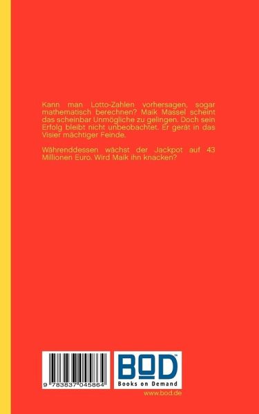 Kann man Lotto-Zahlen vorhersagen, sogar mathematisch berechnen? Maik Massel scheint das scheinbar Unmögliche zu gelingen. Doch sein Erfolg bleibt nicht unbeobachtet. Er gerät in das Visier mächtiger Feinde.Währenddessen wächst der Jackpot auf 43 Millionen Euro. Wird Maik ihn knacken?