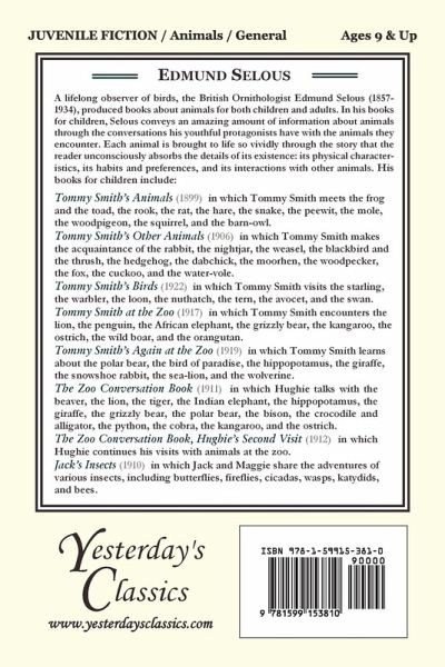 When Jack receives a book on insects for his birthday, Maggie wishes one could get "into" a book. And so they do, experiencing adventures with insects of all sorts as they "travel" through the book. Along the way they encounter a butterfly with a grievance, extraordinary caterpillars, a hungry spider, a distinguished musician (a katydid), as well as fireflies, locusts, grasshoppers, wasps, bees, and more. The author, Edmund Selous, a lifelong observer of wildlife, produced books about animals for both children and adults. In his books for children, Selous conveys an amazing amount of information about animals through the conversations his youthful protagonists have with the animals they encounter. Each animal is brought to life so vividly through the story that the reader unconsciously absorbs the details of its existence: its physical characteristics, its habits and preferences, and its interactions with other animals.