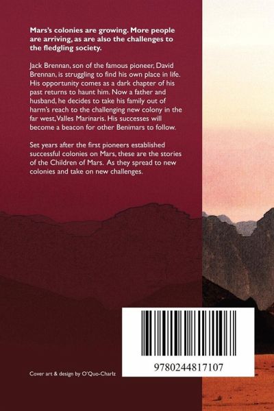 Mars's colonies are growing. More people are arriving, as are also the challenges to the fledgeling society. Jack Brennan, son of the famous pioneer, David Brennan, is struggling to find his own place in life. His opportunity comes as a dark chapter of his past returns to haunt him. Now a father and husband, he decides to take his family out of harm's reach to the challenging new colony in the far west, Valles Marinaris. His successes will become a beacon for other Benimars to follow. Set years after the first pioneers established successful colonies on Mars, these are the stories of the Children of Mars as they spread to new colonies and take on new challenges.