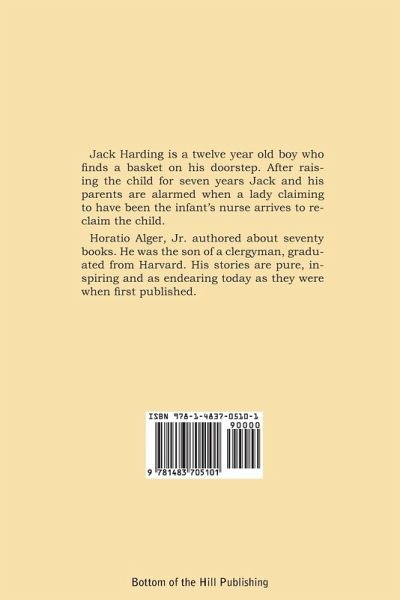 Jack Harding is a twelve year old boy who finds a basket on his doorstep. After raising the child for seven years Jack and his parents are alarmed when a lady claiming to have been the infant's nurse arrives to reclaim the child. Horatio Alger, Jr. authored about seventy books. He was the son of a clergyman, graduated from Harvard. His stories are pure, inspiring and as endearing today as they were when first published.