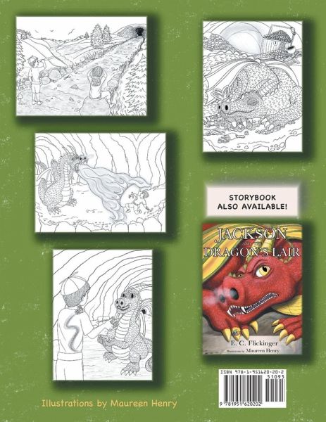 Coloring book by Maureen Henry based on her illustrations for the children's book JACKSON and the Dragon's Lair. Jackson and Olivia explore a mysterious cave in search of a dragon. Includes 43 coloring pages. Benefits of coloring: * Improves fine motor skills * Nurtures creativity and imagination * Develops concentration skills * Increases attention span * Boosts confidence * Calms the brain and body * Relieves stress * And many more!