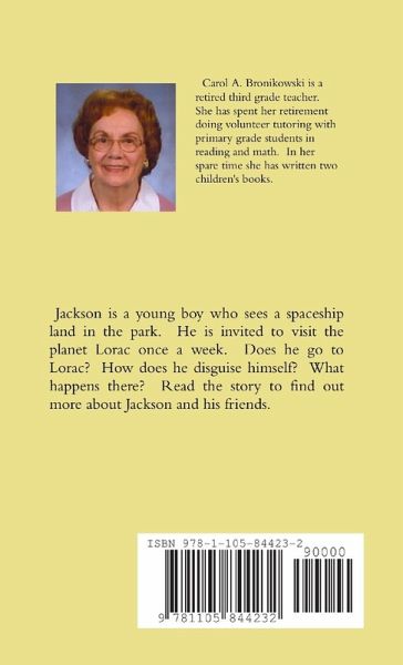 Jackson is a young boy who sees a spaceship land in the park. He is invited to visit the planet Lorac once a week. Does he go to Lorac? How does he disguise himself? What happens there? Read the story to find out more about Jackson and his friends.