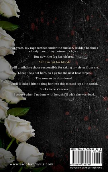 The devil came to me in disguise. Too bad I didn't notice until it was far too late. Vanessa: The devil doesn't always wear an evil mask. Sometimes, he appears in the most beautiful form. Like the super-hot bad boy with the dirty-blond hair and a wicked glint in his blue eyes who swept in out of nowhere, stealing all the air from my lungs. I thought he was my savior. But he's my ruination. And he's just taken a machete to my heart. Jackson: For years, my rage seethed under the surface. Hidden behind a cloudy haze of my poison of choice. But now, the fog has cleared. And I'm out for blood. I will annihilate those responsible for taking my sister from me. Except he's not here, so I go for the next best target. The woman he abandoned. Until it suited him to drag her into this messed-up elite world. Sucks to be her. Because when I'm done with Vanessa, she'll wish she was dead. Due to mature content and themes, this book is recommended to readers aged eighteen and over. Some scenes may be triggering. Full length, 126k-word novel.