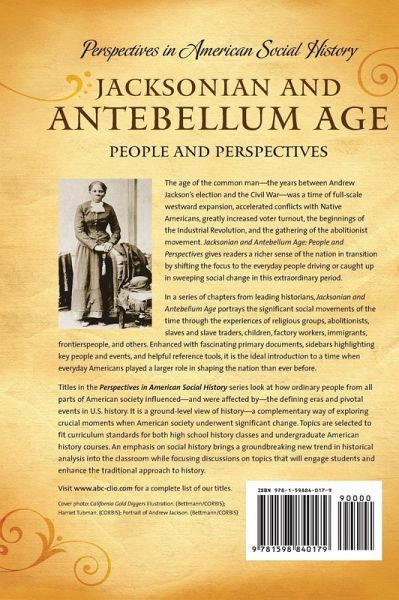 This volume in the Perspectives in American Social History series highlights the extraordinary contributions of ordinary men, women, and children in the transformation of the country in the time of Andrew Jackson. Jacksonian and Antebellum Age: People and Perspectives spans the "age of the common man" by focusing on the everyday citizens who helped drive the big social changes of the times-or were simply caught up in them. The coverage takes readers into the lives of the frontiersmen, townspeople, women, children, religious groups, abolitionists, slaves, slave traders, and others who effected, and were affected by, the history of those times. Jacksonian and Antebellum Age explores a pivotal era in American history, a time that saw the return of the two-party system, heightened voter turnout, and the gathering of the abolitionist movement. As this volume demonstrates, no study of these defining events is complete without understanding how they were shaped by the country's least celebrated citizens.