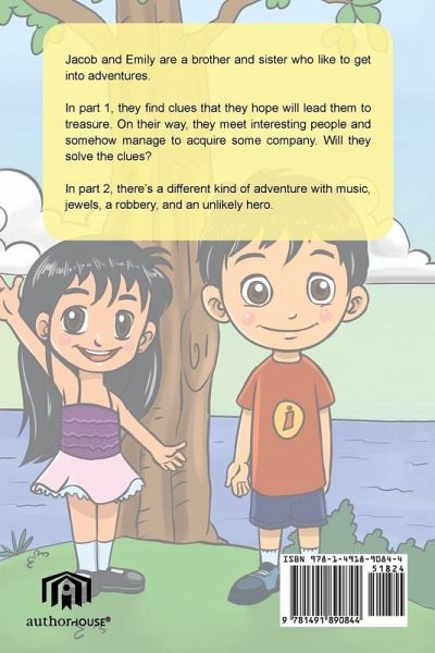 Jacob and Emily are a brother and sister who like to get into adventures. In part 1, they find clues that they hope will lead them to treasure. On their way, they meet interesting people and somehow manage to acquire some company. Will they solve the clues? In part 2, there's a different kind of adventure with music, jewels, a robbery, and an unlikely hero.