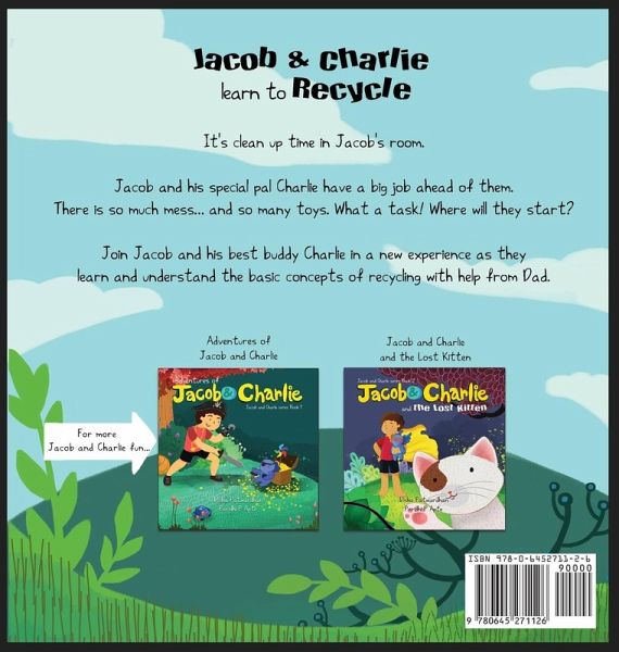 It's time to clean up Jacob's room! Where will they start? How will they do it? Take part in a fun yet educational third instalment of the Jacob & Charlie series! This is a heartwarming story about Jacob, a little boy who has found an incredible companion in his soft toy elephant, Charlie. Jacob's room is messy and it is time to clean up, but how to clean up without harming the environment? Join Jacob as he learns the three basic R's of recycling - Reduce, Reuse and Recycling with his Dad. This book introduces a difficult concept like recycling in an easy to understand language. With practical ideas and examples on every page, let your child learn with Jacob what it really means to recycle - to protect Earth's precious resources and care for our planet Earth. Created with colorful and unique vivid illustrations, this book will surely capture your children's attention while teaching them a valuable lesson. Read aloud to help your child understand that their little contributions can make a big difference! Follow along with Jacob and Charlie to become more kind and eco friendly. Book details:Great for kids of all ages, especially for ages 3-6. An excellent way to introduce recycling concepts to young kids. Easy to read language for kindergarteners and first graders. An ideal read for a bedtime story or a school library book reading. Would make an excellent gift for any young child. The book is delightful, educational and will encourage your child to read more. Join the adventure with Jacob and Charlie!
