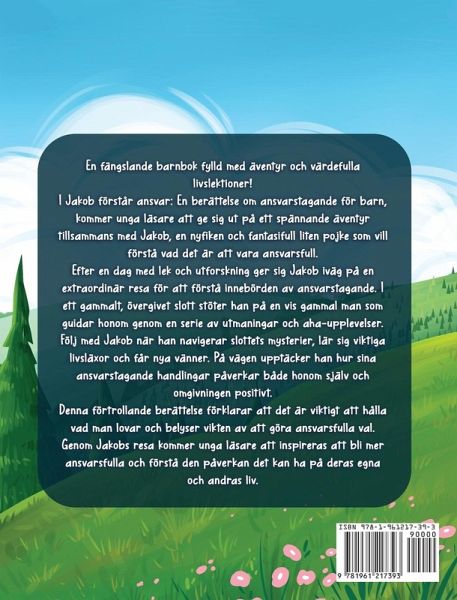 En fängslande barnbok fylld med äventyr och värdefulla livslektioner! I Jakob förstår ansvar: En berättelse om ansvarstagande för barn, kommer unga läsare att ge sig ut på ett spännande äventyr tillsammans med Jakob, en nyfiken och fantasifull liten pojke som vill förstå vad det är att vara ansvarsfull. Efter en dag med lek och utforskning ger sig Jakob iväg på en extraordinär resa för att förstå innebörden av ansvarstagande. I ett gammalt, övergivet slott stöter han på en vis gammal man som guidar honom genom en serie av utmaningar och aha-upplevelser. Följ med Jakob när han navigerar slottets mysterier, lär sig viktiga livsläxor och får nya vänner. På vägen upptäcker han hur sina ansvarstagande handlingar påverkar både honom själv och omgivningen positivt. Denna förtrollande berättelse förklarar att det är viktigt att hålla vad man lovar och belyser vikten av att göra ansvarsfulla val. Genom Jakobs resa kommer unga läsare att inspireras att bli mer ansvarsfulla och förstå den påverkan det kan ha på deras egna och andras liv. Missa inte denna fängslande och tankeväckande berättelse som kommer att ge barn möjlighet att omfamna ansvar och göra en positiv skillnad i världen.