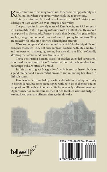 Ken Jacobie's wartime assignment was to become his opportunity of a lifetime, but where opportunity inevitably led to reckoning. This is a riveting fictional novel rooted in WW2 history and subsequent East-West Cold War intrigue and rivalry. The protagonist is recently married Ken Jacobie, an RAF sergeant with a beautiful but still-young wife, now with an infant son. He is about to be posted to Normandy, France, a week after D-day. Assigned to him are his young commonwealth crew of some 18 young technicians. They are tasked with salvaging downed allied fighter aircraft. Wars are complex affairs well suited to Jacobie's leadership skills and complex character. They not only confront soldiers with life and death and unexpected challenging events, but also disrupt life, profoundly affecting the soldiers and their families alike. Those contrasting human stories of sudden extended separation, emotional vacuum and a life of 'making do', both at the home-front and on foreign soil, are often left untold. In this balancing act Maggie, Ken's wife, is seen as heroic, both as a good mother and a resourceful provider and in finding her stride in difficult times. Ken Jacobie, surrounded by wartime devastation and opportunity in foreign lands, becomes preoccupied with both its challenges and its temptations. Thoughts of domestic life become only a distant memory. Opportunity has become the essence of Ken Jacobie's wartime zeitgeist, leaving loved ones as collateral damage in his wake.