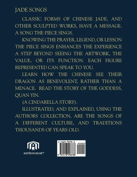 Classic forms of Chinese jade, and other sculpted works, have a message. A song the piece sings. Knowing the prayer, legend, or lesson the piece sings enhances the experience a step beyond seeing the artwork, the value, or its function. Each figure represented can speak to you. Learn how the Chinese see their dragon as benevolent, rather than a menace. Read the story of the goddess, Quan yin. (a cindarella story). Illustrated, and explained, using the authors collection, are the songs of a different culture, and traditions thousands of years old.