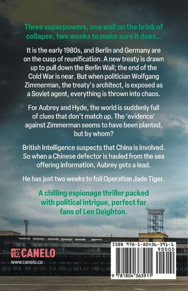 Three superpowers, one wall on the brink of collapse, two weeks to make sure it does... It is the early 1980s, and Berlin and Germany are on the cusp of reunification. A new treaty is made to pull down the Berlin Wall, and the end of the Cold War is in sight. But when politician Wolfgang Zimmerman, the architect of the treaty, is exposed as a Soviet agent, everything is thrown into chaos. For espionage veteran Kenneth Aubrey and British agent Patrick Hyde, the world is suddenly full of clues that don't match up. The 'evidence' against Zimmerman seems to have been planted, but by whom? British Intelligence suspects that China is heavily involved. The Cold War ending in Europe could mean Russian troops redeployed from East Germany to the China-Russian border... So when a Chinese defector is hauled from Hong Kong harbour, trading information for asylum, Aubrey suddenly has a lead. In six months Aubrey could crack the defector. But he doesn't have months, he has just two weeks. Two weeks to save the reunification, and foil Operation Jade Tiger... Deception, political intrigue and heart-racing action run throughout this chilling espionage thriller by Craig Thomas, perfect for fans of Tom Clancy and Len Deighton.