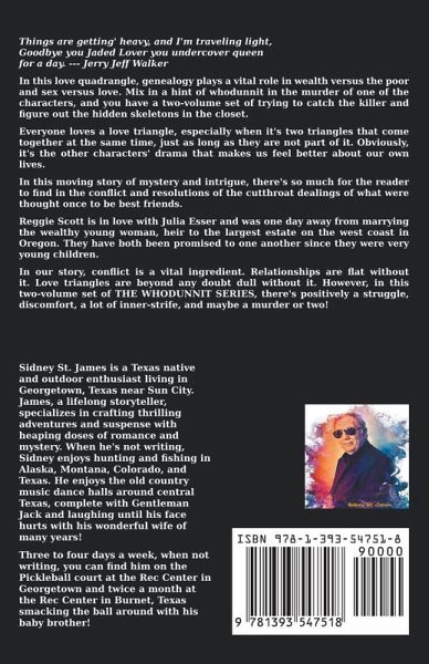Things are getting' heavy, and I'm traveling light, Goodbye you Jaded Lover you undercover queen for a day. --- Jerry Jeff Walker In this love quadrangle, genealogy plays a vital role in wealth versus the poor and sex versus love. Mix in a hint of whodunnit in the murder of one of the characters, and you have a two-volume set of trying to catch the killer and figure out the hidden skeletons in the closet. Everyone loves a love triangle, especially when it's two triangles that come together at the same time, just as long as they are not part of it. Obviously, it's the other characters' drama that makes us feel better about our own lives. In this moving story of mystery and intrigue, there's so much for the reader to find in the conflict and resolutions of the cutthroat dealings of what were thought once to be best friends. The setting of this novel take place along the west coast of the United States in Black Rock Cove, Oregon. The main characters come from three wealthy families, one to the north, one to the south, and one right along the coastline in downtown Black Rock Cove. The year is 1882. Reggie Scott is in love with Julia Esser and was one day away from marrying the wealthy young woman, heir to the largest estate on the west coast in Oregon. They have both been promised to one another since they were very young children. However, Reggie didn't know until one day before the wedding, his best friend and best man dug up a frightening mystery of his past. He used it against him to try and steal Julia, the woman he loved, and make her his own. Overnight Reggie left on the midnight train to travel to New Orleans to find out the truth of this mystery. He needed to know and couldn't bear letting anyone in on this mysterious past he possessed. Streaming tears cleansed Julia's red cheeks the day she was left standing at the altar. Her vision was blurred with waves of sadness. The salty tears flowed into her mouth so that she could taste her own sorrow. Why did Reggie not call or show up for the wedding? Where did he go? Would he ever return? Julia experienced bitter and unforgiving pain in her heart. Best Man, Marco Ross and his twin sister, Angie, conspired to win the hearts of Julia and Reggie. In our story, conflict is a vital ingredient. Relationships are flat without it. Love triangles are beyond any doubt dull without it. However, in this two-volume set of THE WHODUNNIT SERIES, there's positively a struggle, discomfort, a lot of inner-strife, and maybe a murder or two!